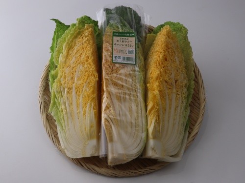 しっかりとした食感で、長時間煮込んでも煮くずれしにくく、はくさい特有の青臭さが少ないため食べやすいことが特長です。